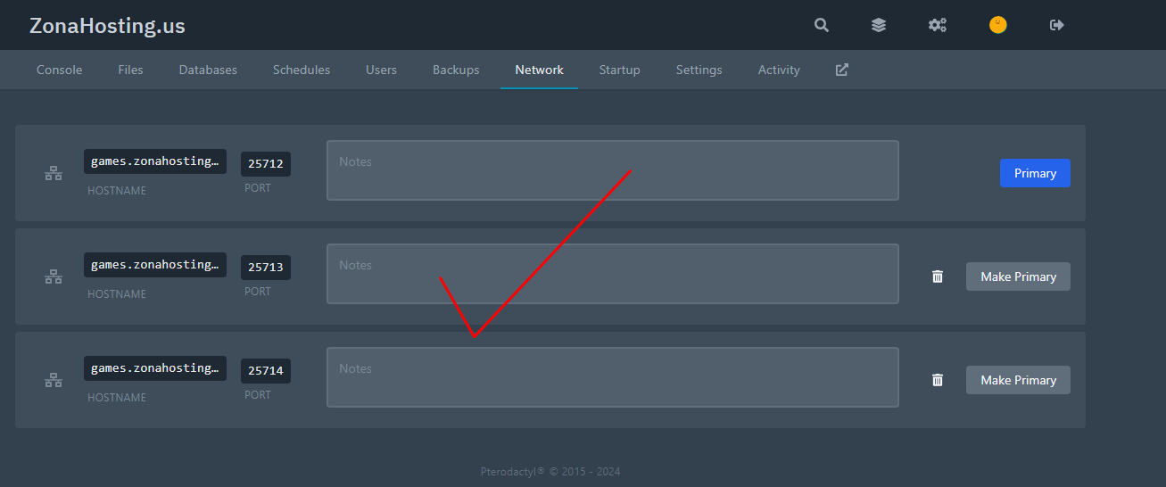 Then we go to network and we need to check that we have at least 3 total port avaliable. In our case we don't have them, so we contact support and they will register the ports for us.