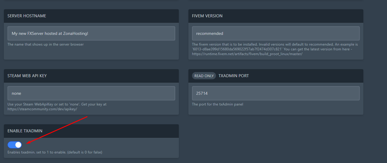 We also need to scroll down and enable the TxAdmin panel too.